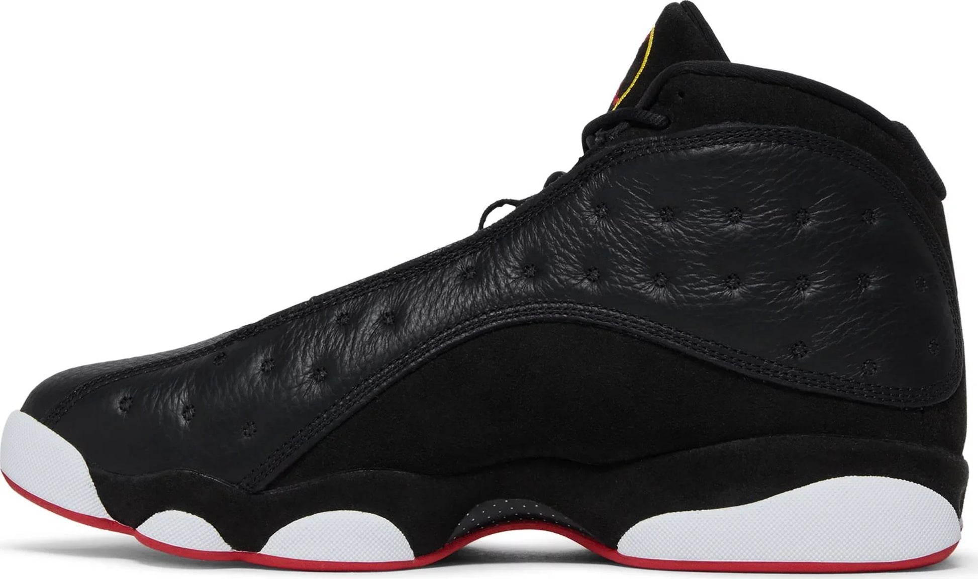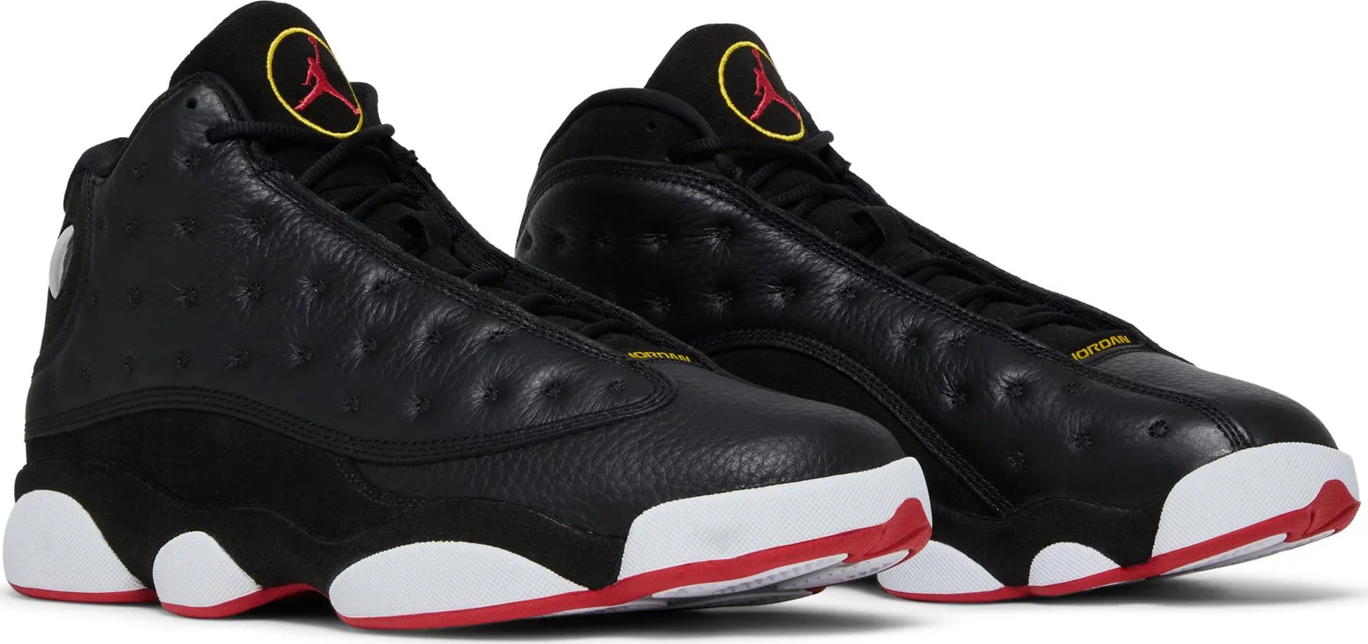 El Air Jordan 13 Retro 'Playoff' 2023 recupera una combinación de colores original que se vio por primera vez cuando Michael Jordan lo debutó en el All-Star Game de 1998 en la ciudad de Nueva York. La parte superior de ante y cuero acolchado negro presenta un holograma en la parte posterior del talón, junto con un logotipo de Jumpman en un círculo amarillo en la lengüeta. Las panteras inspiradas en el apodo de gato negro de MJ conforman las vainas blancas de la entresuela, así como la suela exterior segmentada.