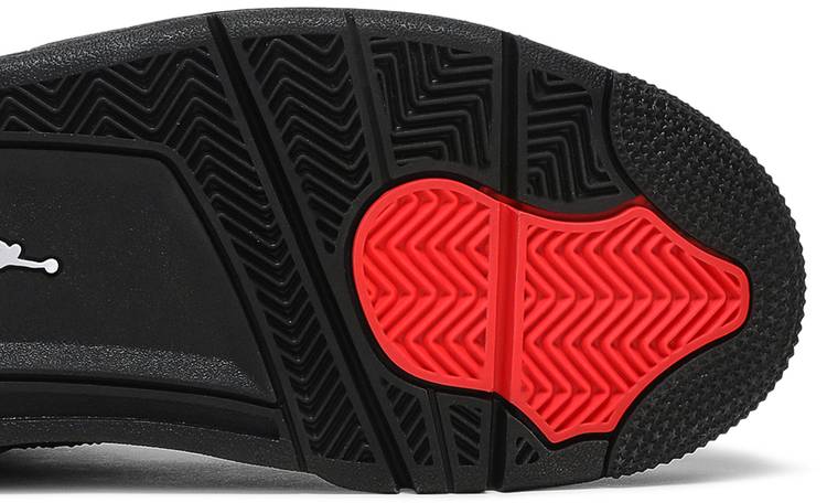 El Air Jordan 4 Retro 'Red Thunder' presenta un bloqueo de color familiar que recuerda el codiciado colorway 'Thunder', lanzado originalmente en 2006 y posteriormente reeditado en 2012. El mid-top luce una parte superior de nubuck negro con toques de carmesí contrastantes en lugar del Acentos Tour Yellow de zapatos más antiguos. Aparecen en los ojales moldeados de la zapatilla, la lengüeta interior, el panel lateral, el cuello y la entresuela, que incluye una amortiguación Air-sole visible debajo del talón. La marca Jumpman decora la lengüeta y el talón.