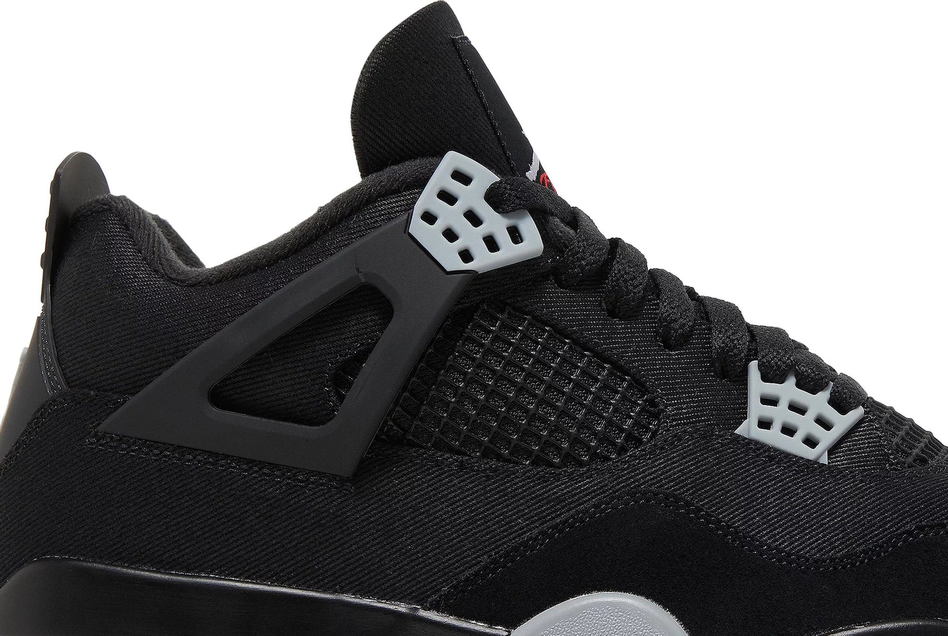 El Air Jordan 4 Retro SE 'Black Canvas' cuenta con un esquema de color neutral que recuerda el extremadamente raro Carhartt x Air Jordan 4 de Eminem. La parte superior media lleva una parte superior de lienzo negro con una capa de ante del mismo tono en el antepié y ojales grises moldeados. Un Jumpman gris a juego decora la parte posterior del talón y la etiqueta de la lengüeta tejida, esta última acentuada con un logotipo de Flight carmesí para una explosión nítida de color contrastante. La zapatilla se monta sobre una entresuela de poliuretano de dos tonos con amortiguación Air-sole visible en el talón.