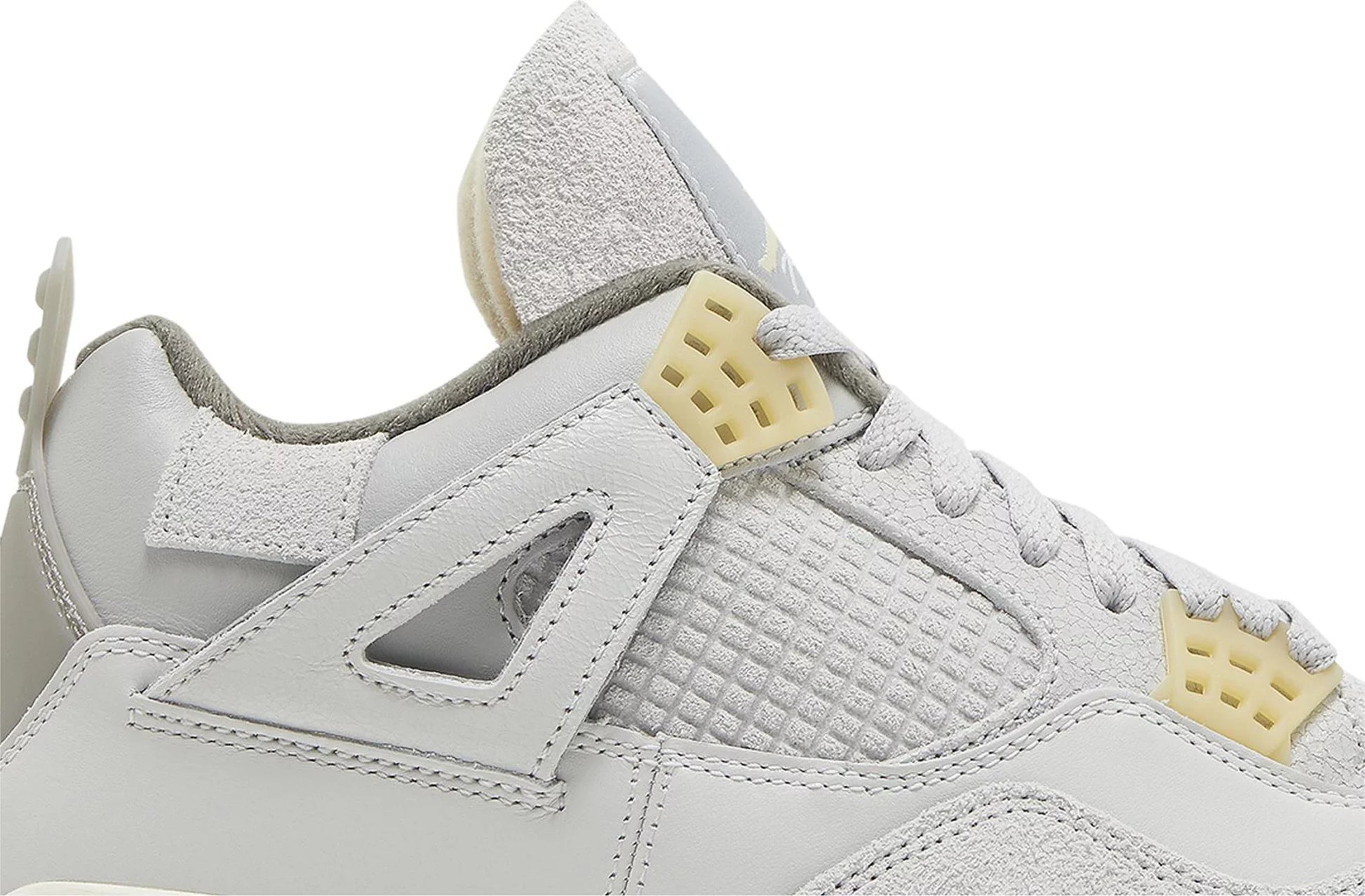 El Air Jordan 4 Retro SE 'Craft' renueva el diseño original de 1989 de Tinker Hatfield con materiales mejorados. La silueta heredada luce una parte superior de cuero gris claro con una construcción de gamuza tonal en el cuello y la parte delantera del pie. Las alas de soporte están construidas con cuero agrietado, mientras que la gamuza cuadriculada reemplaza la red de plástico tradicional en el panel lateral. Los acentos de Pale Vanilla se asientan en los ojales moldeados del zapato, así como los toques de la marca Jumpman en la lengüeta y el talón. Se proporciona una amortiguación liviana en una entresuela de poliuretano color hueso, con una unidad Air-sole visible ubicada en el talón.