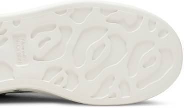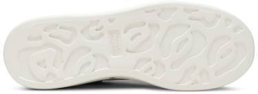 Zapatilla blanca completamente, cuenta con cordones planos grandes y está terminada con una firma de Alexander McQueen en la lengüeta y el talón. Suela de goma de gran tamaño con diseño de sello distintivo. Las zapatillas vienen con un conjunto adicional de cordones.