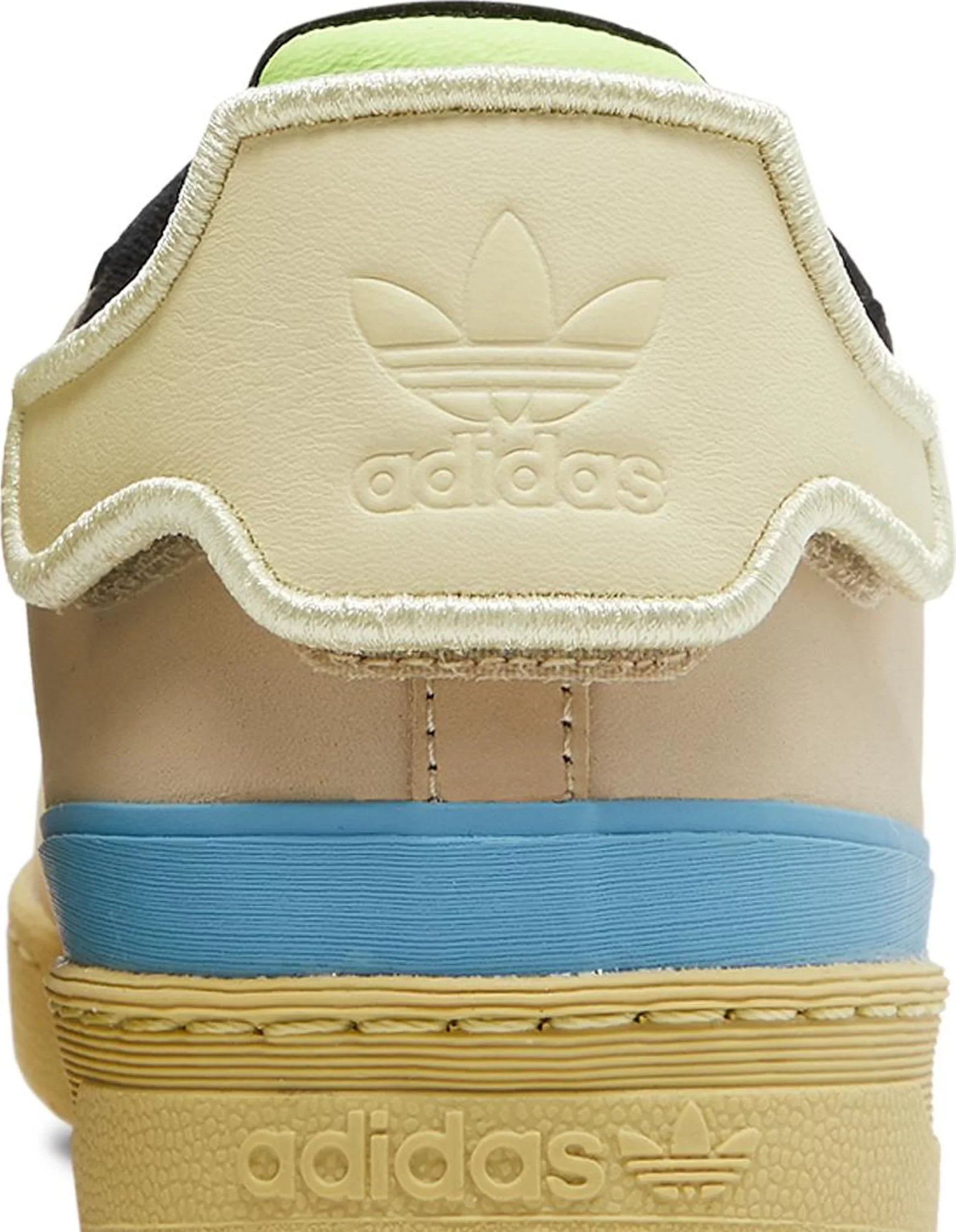 El Bad Bunny x adidas Forum Powerphase 'Catch and Throw' presenta un diseño híbrido con acolchado y proporciones inspiradas en los zapatos de skate de principios de la década de 2000. La parte superior de adidas Forum se presenta en una paleta contrastante que hace un guiño al juego Catch and Throw que el artista latino disfrutaba cuando era niño, presentando un tema de expresión sin límites. Los cordones Ghillie aseguran la parte superior de lona y cuero, con un acabado en tonos neutros tostados y negros con toques de color pastel. Los elementos de la marca incluyen el gráfico del tercer ojo de Bad Bunny en la lengüeta removible, un logotipo de Trefoil en el parche de velcro en el talón y el nombre del artista, Benito, impreso en el panel lateral. La zapatilla se monta en una entresuela prestada de adidas Powerphase, completa con detalles web de Dellinger para darle un toque vintage.