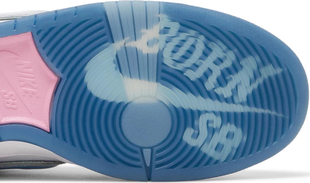El Born x Raised x Nike Dunk Low SB 'One Block at a Time' trae una serie de detalles únicos a la silueta clásica. La marca de ropa urbana con sede en Los Ángeles viste la parte superior en cuero blanco texturizado con perforaciones ornamentadas en la puntera y revestimientos de nubuck contrastantes en azul Dodger. "Un bloque a la vez" está inscrito en la punta de cada zapato, mientras que un emblema decorativo bordado en rosa decora el lateral del talón. Un efecto holográfico anima el Swoosh y la lengüeta trasera, marcada con un logo lenticular de Born SB. La zapatilla se asienta sobre una entresuela de goma blanca, con letras en relieve que deletrean "On the Turf" en el talón. Bajo los pies, la suela exterior de goma azul semitranslúcida revela la marca Born SB de gran tamaño.