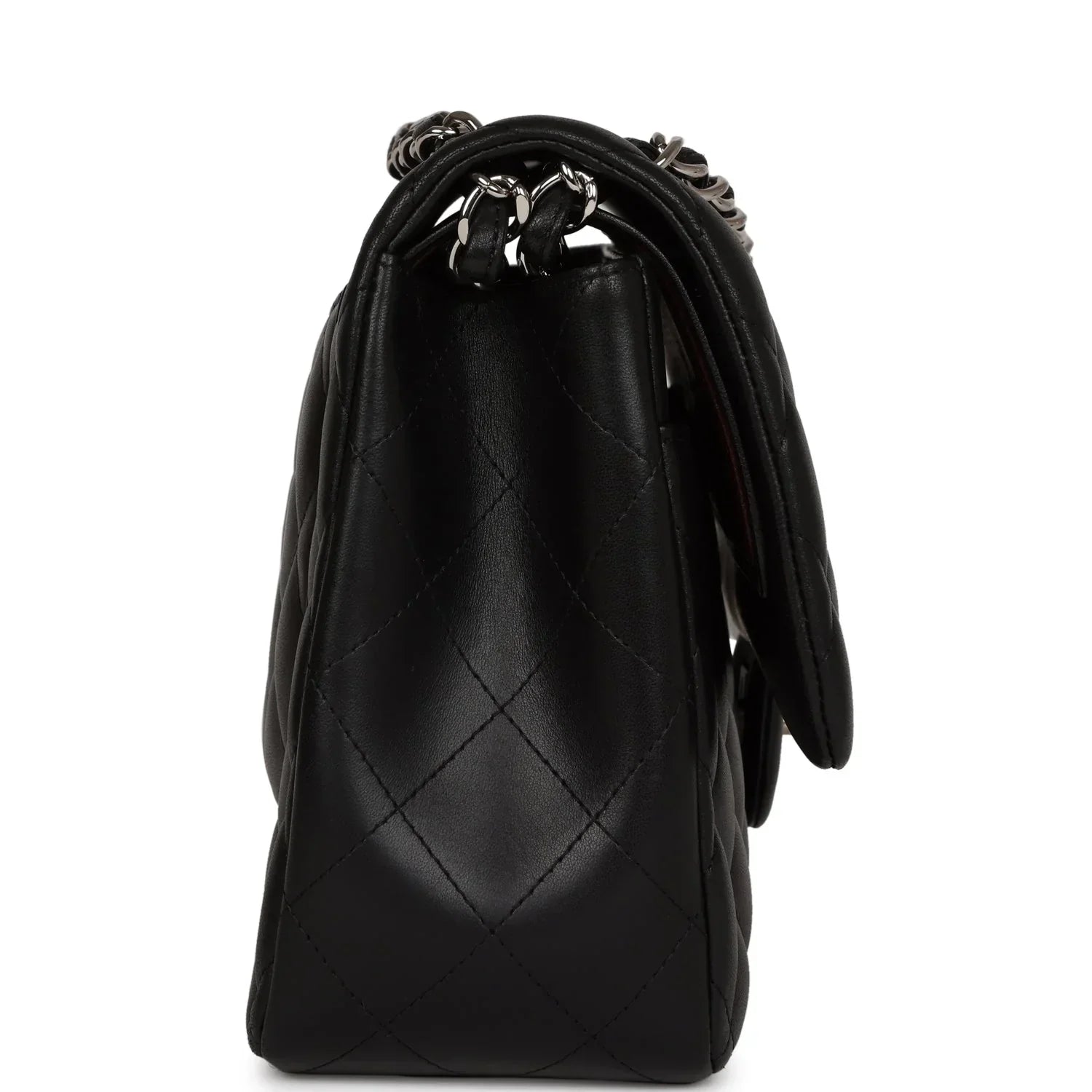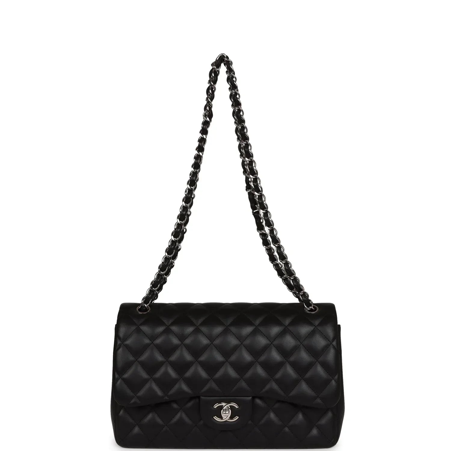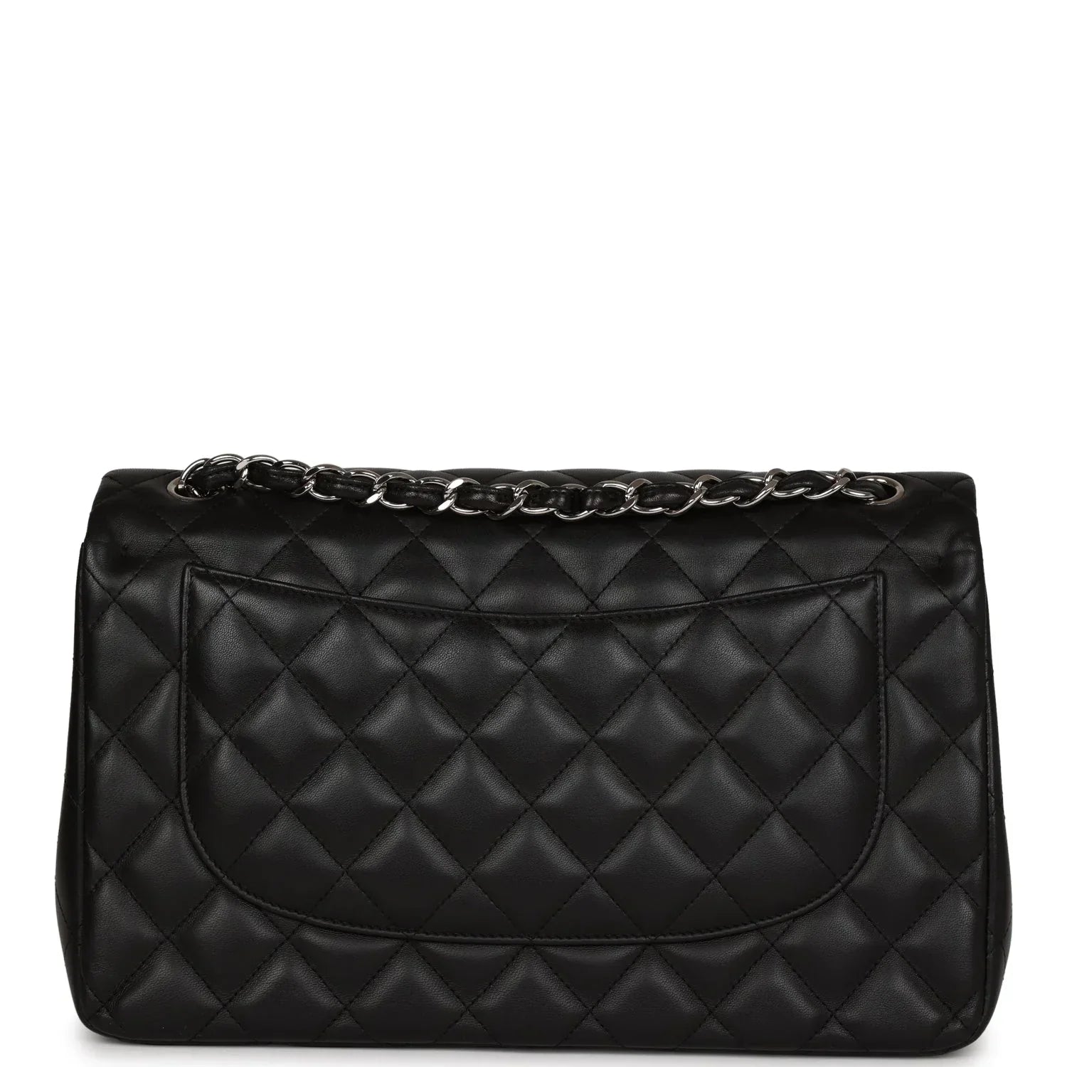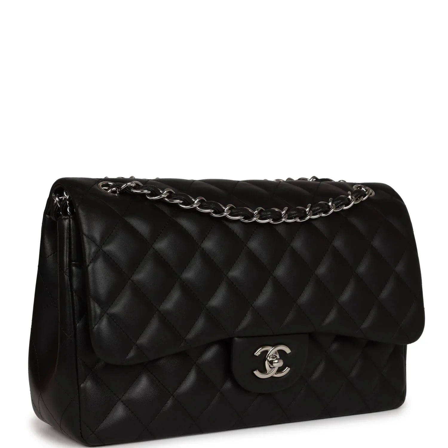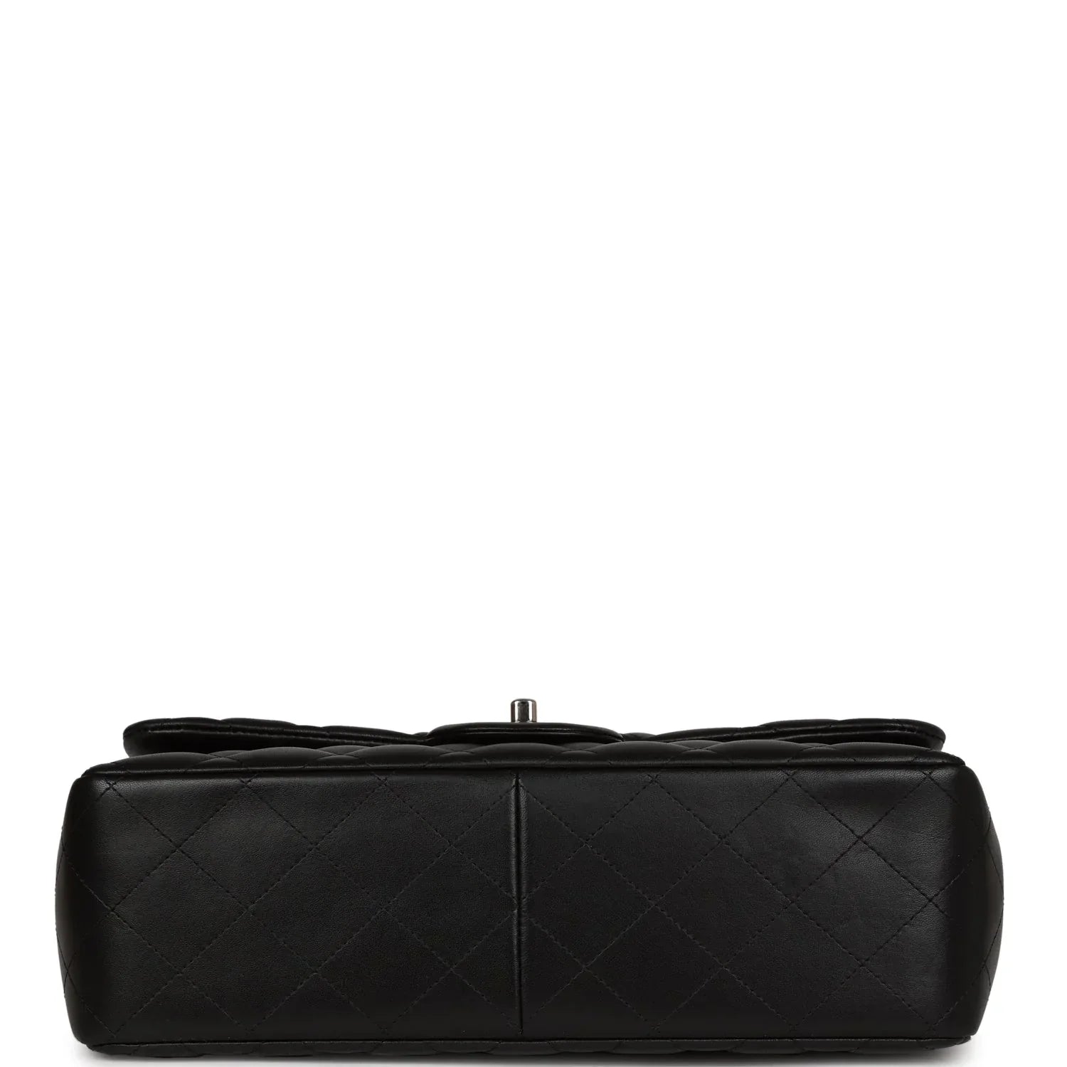 Chanel Classic Double Flap Quilted Lambskin Silver-tone Jumbo Black