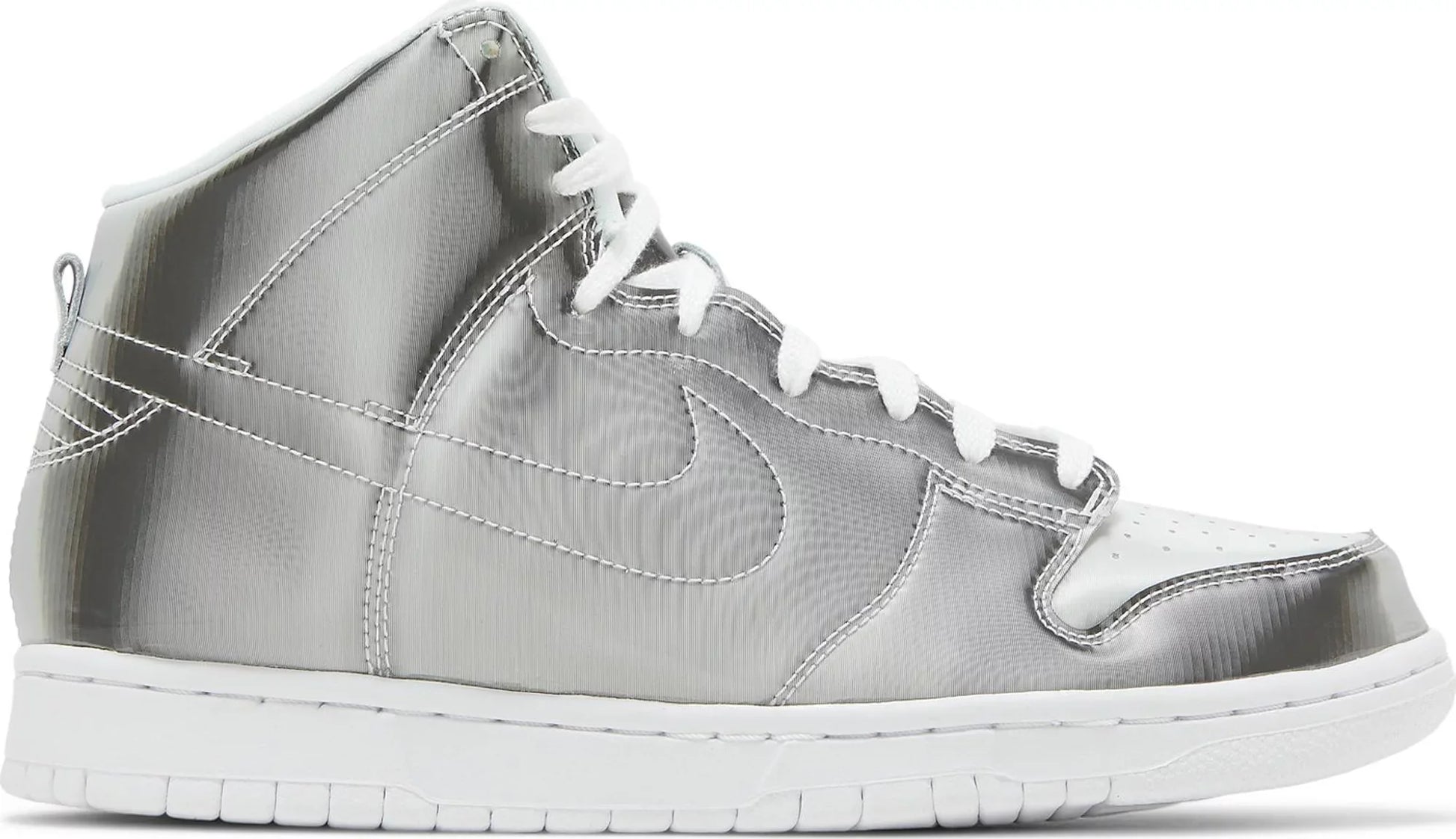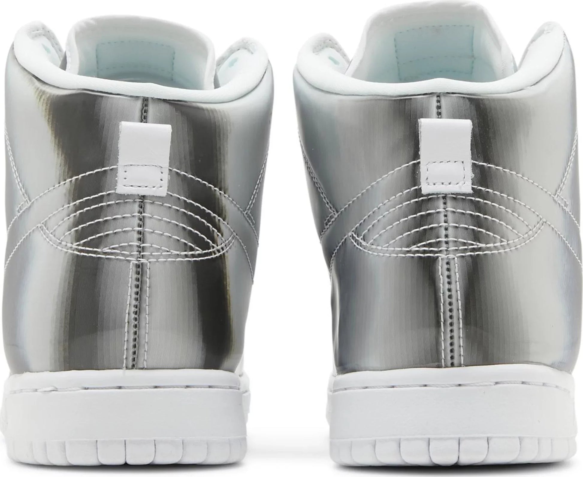 El CLOT x Nike Dunk High 'Flux' presenta la interpretación futurista de Edison Chen de la silueta clásica. Inspirándose en la filosofía yin-yang de fluidez y armonía, el fundador de CLOT viste el zapato con una construcción lenticular única que muestra un efecto brillante similar al cromo. El Swoosh y las superposiciones exclusivas se reemplazan con detalles de pespuntes para mantener la estética elegante del calzado. Encima de la lengüeta, una etiqueta de marca compartida revela un logotipo de CLOT o Nike según el ángulo de visión. Una suela de goma duradera con un acabado blanco sólido ancla la parte superior alta.