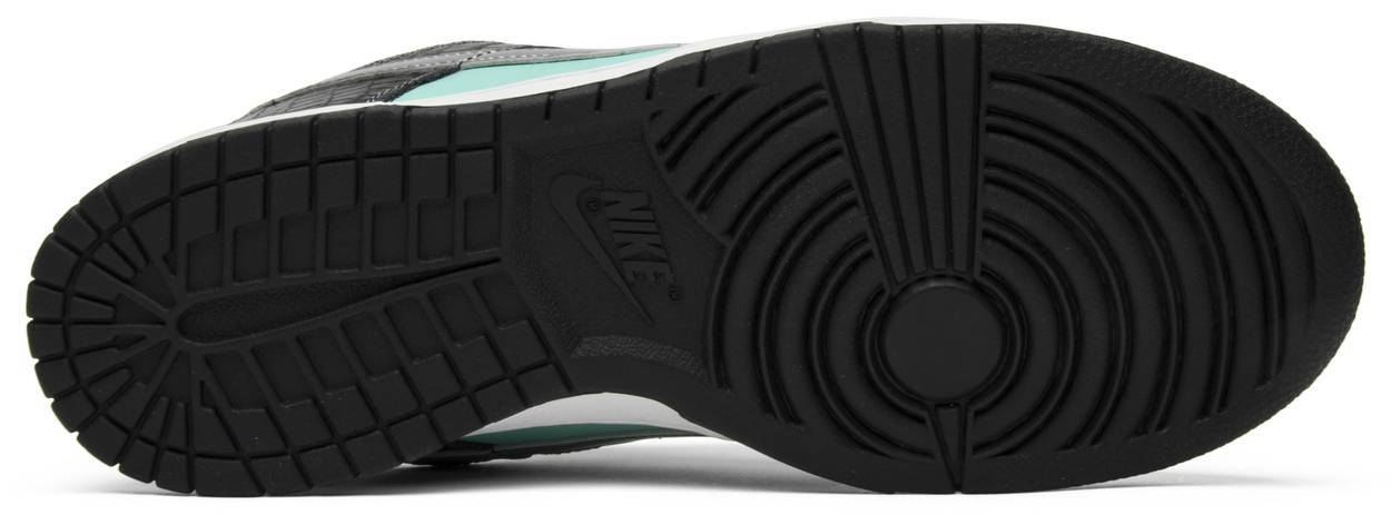 Lanzada en agosto de 2005 como parte de la serie Team Manager, Diamond Supply Co. x Dunk Low Pro SB 'Tiffany' atrajo largas filas y campamentos en tiendas de patinaje en todo el país. La parte superior de cuero está acabada en Aqua y acentuada con un Swoosh plateado metálico. Las superposiciones de cuero negro presentan una textura en relieve de cocodrilo y costuras blancas en contraste.