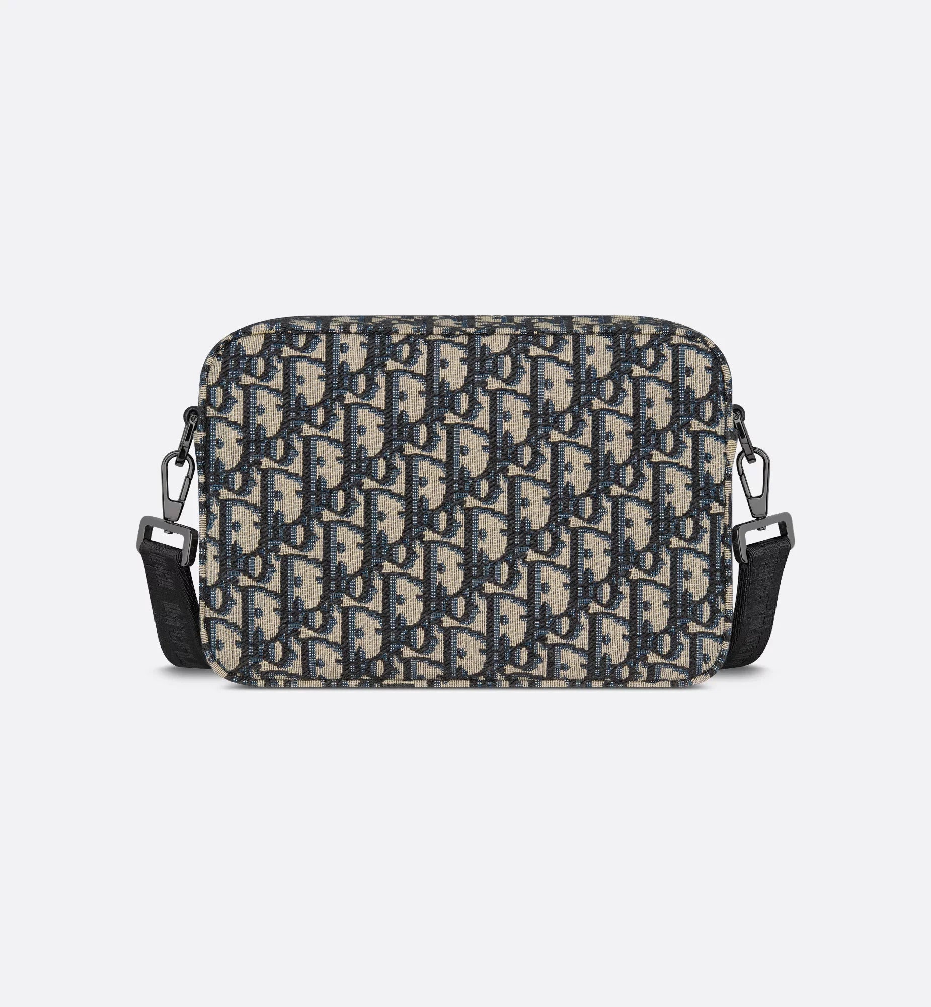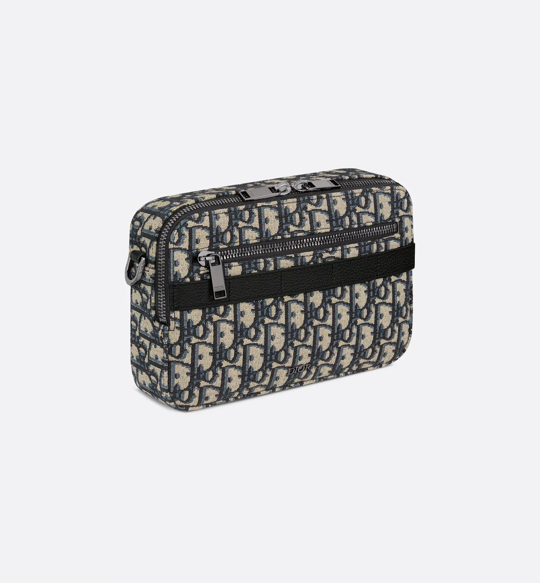 The Safari shoulder bag is a practical and compact style, ideal for everyday use. Crafted with the Dior Oblique motif in beige and black jacquard, it is embellished with black grained calfskin details. The zipped compartment and front pocket hold essentials, while the adjustable Christian Dior strap allows it to be worn over the shoulder or across the body.