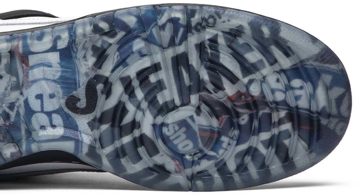 Concebido originalmente como una muestra de color que fue rechazado inicialmente, el 'Panda Pigeon' de Jeff Staple x Dunk Low Pro SB continúa la asociación de larga duración de Staple con Nike SB. El diseño hace honor a su nombre con un esquema de color blanco y negro en la parte superior de cuero y gamuza, completo con la importantísima paloma en el talón lateral. Una suela translúcida revela un collage compuesto por titulares de periódicos que aluden al infame lanzamiento de Pigeon Dunk en 2005.