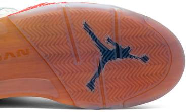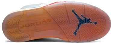 La zapatilla Trophy Room x Air Jordan 5 Retro se inspira en la sala de trofeos de la vida real en la casa de la familia Jordan. Esta versión 'Ice Blue' está repleta de una parte superior de gamuza rica, toques de University Red, Sail y un cierre de encaje dorado metálico. Cada talón lateral está bordado con números de oro metálico, "23" y "5", los números de camiseta usados por MJ y su hijo, Marcus. Debajo, la suela de goma translúcida de la zapatilla muestra un motivo de vetas de madera para hacer referencia al piso estilo cancha en la sala de trofeos de MJ. En mayo de 2019 se lanzaron un total de 7.000 pares, cada uno numerado individualmente.