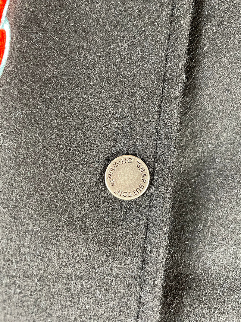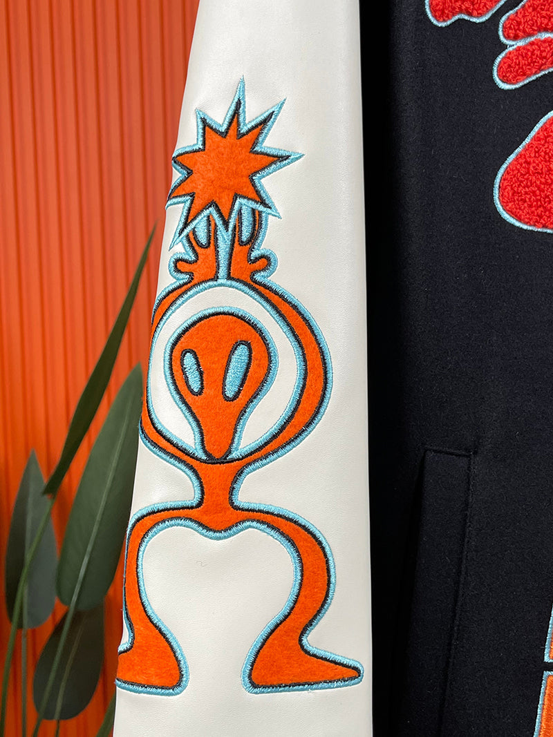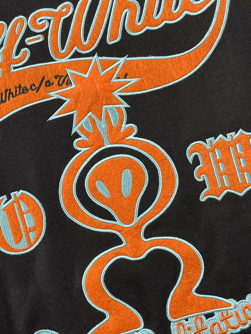 OFF-WHITE GRAPHICS LEATHER VARSITY JACKET Black Orange
