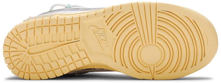 Con la etiqueta '01 de 50 ', esta edición inaugural de Off-White x Nike Dunk Low inicia la colección' Dear Summer ', con una parte superior blanca nítida construida con una mezcla de lona y cuero. Un Swoosh plateado metálico atraviesa el panel lateral, mientras que los cordones de cuerda suplementarios zigzaguean en la parte superior, formando un bucle a través de cables Flywire integrados que emergen de ojales estratégicamente colocados. Una entresuela previamente amarillenta se combina con una lengüeta de espuma expuesta para darle al zapato una estética vintage. Los toques característicos de Virgil Abloh incluyen una corbata de plástico blanca, una lengüeta descentrada y líneas de texto Helvetica en el lado medial.