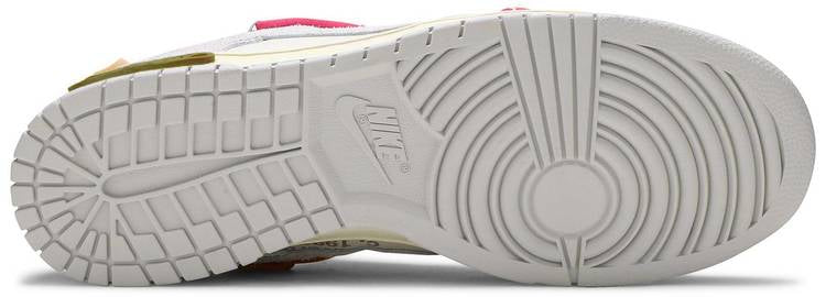 Estas zapatillas Off-White x Nike Dunk Low están tomadas de la colección 'Dear Summer', una continuación en expansión de la primera colaboración Nike Dunk de Virgil Abloh de 2019. Las zapatillas bajas utilizan una parte superior de cuero blanco con superposiciones de gamuza gris suave, junto con las florituras de la tarjeta de visita de Virgil Abloh, que incluyen una corbata de plástico y un texto Helvetica impreso.