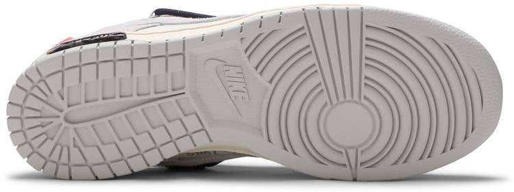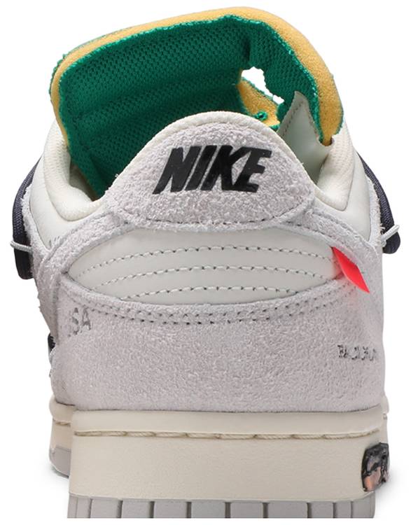 Estas zapatillas Off-White x Nike Dunk Low están tomadas de la colección 'Dear Summer', una continuación en expansión de la primera colaboración Nike Dunk de Virgil Abloh de 2019. Las zapatillas bajas utilizan una parte superior de cuero blanco con superposiciones de gamuza gris suave, junto con las florituras de la tarjeta de visita de Virgil Abloh, que incluyen una corbata de plástico y un texto Helvetica impreso.