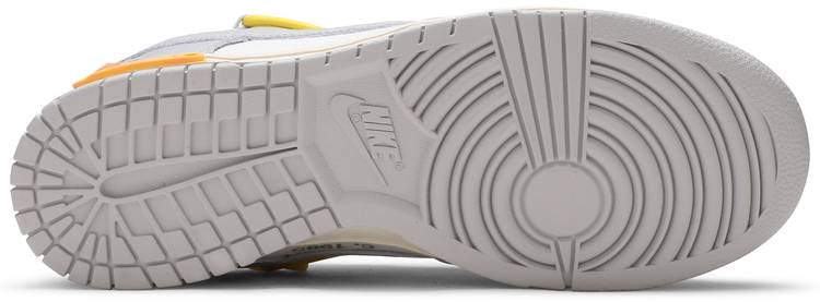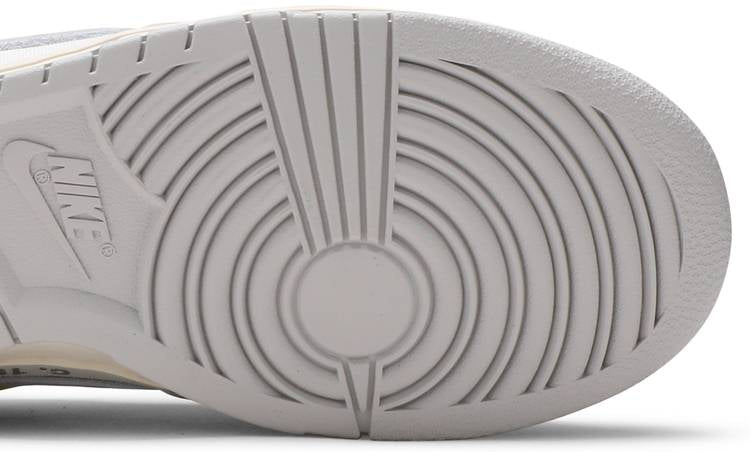 Estas zapatillas Off-White x Nike Dunk Low están tomadas de la colección 'Dear Summer', una continuación en expansión de la primera colaboración Nike Dunk de Virgil Abloh de 2019. Las zapatillas bajas utilizan una parte superior de cuero blanco con superposiciones de lona gris suave, junto con las florituras de la tarjeta de visita de Virgil Abloh, que incluyen una corbata de plástico y un texto Helvetica impreso.