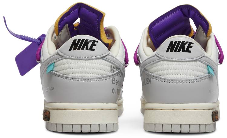 Estas zapatillas Off-White x Nike Dunk Low están tomadas de la colección 'Dear Summer', una continuación en expansión de la primera colaboración Nike Dunk de Virgil Abloh de 2019. Las zapatillas bajas utilizan una parte superior de cuero blanco con superposiciones de lona gris suave, junto con las florituras de la tarjeta de visita de Virgil Abloh, que incluyen una corbata de plástico y un texto Helvetica impreso.