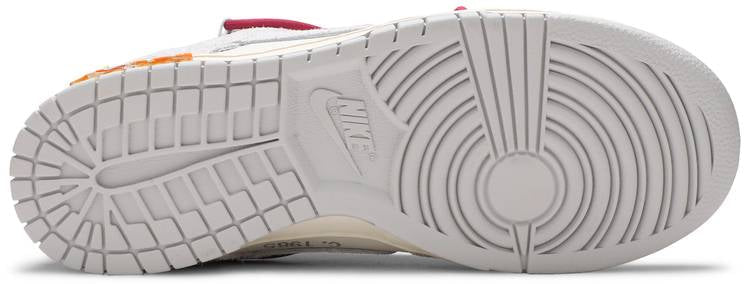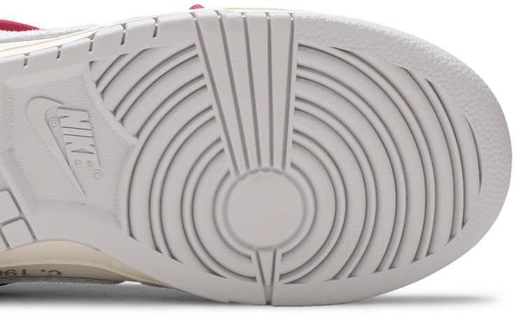 Estas zapatillas Off-White x Nike Dunk Low están tomadas de la colección 'Dear Summer', una continuación en expansión de la primera colaboración Nike Dunk de Virgil Abloh de 2019. Las zapatillas bajas utilizan una parte superior de cuero blanco con superposiciones de gamuza gris suave, junto con las florituras de la tarjeta de visita de Virgil Abloh, que incluyen una corbata de plástico y un texto Helvetica impreso.