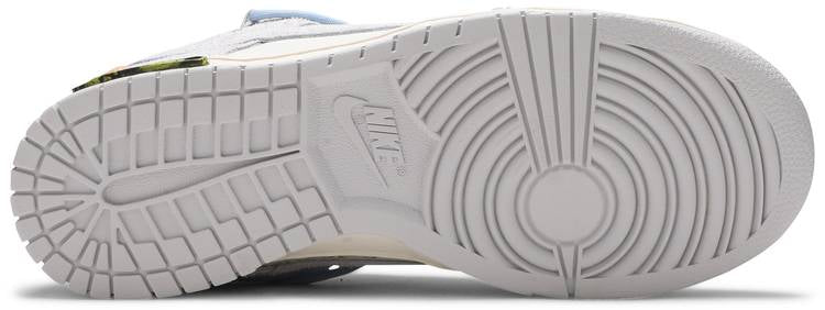 Estas zapatillas Off-White x Nike Dunk Low están tomadas de la colección 'Dear Summer', una continuación en expansión de la primera colaboración Nike Dunk de Virgil Abloh de 2019. Las zapatillas bajas utilizan una parte superior de cuero blanco con superposiciones de gamuza gris suave, junto con las florituras de la tarjeta de visita de Virgil Abloh, que incluyen una corbata de plástico y un texto Helvetica impreso.