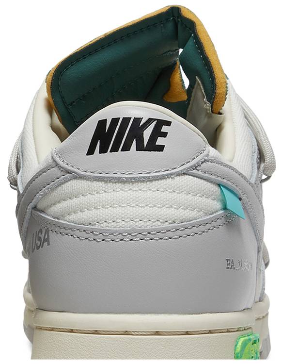 Estas zapatillas Off-White x Nike Dunk Low están tomadas de la colección 'Dear Summer', una continuación en expansión de la primera colaboración Nike Dunk de Virgil Abloh de 2019. Las zapatillas bajas utilizan una parte superior de cuero blanco con superposiciones de lona gris suave, junto con las florituras de la tarjeta de visita de Virgil Abloh, que incluyen una corbata de plástico y un texto Helvetica impreso.