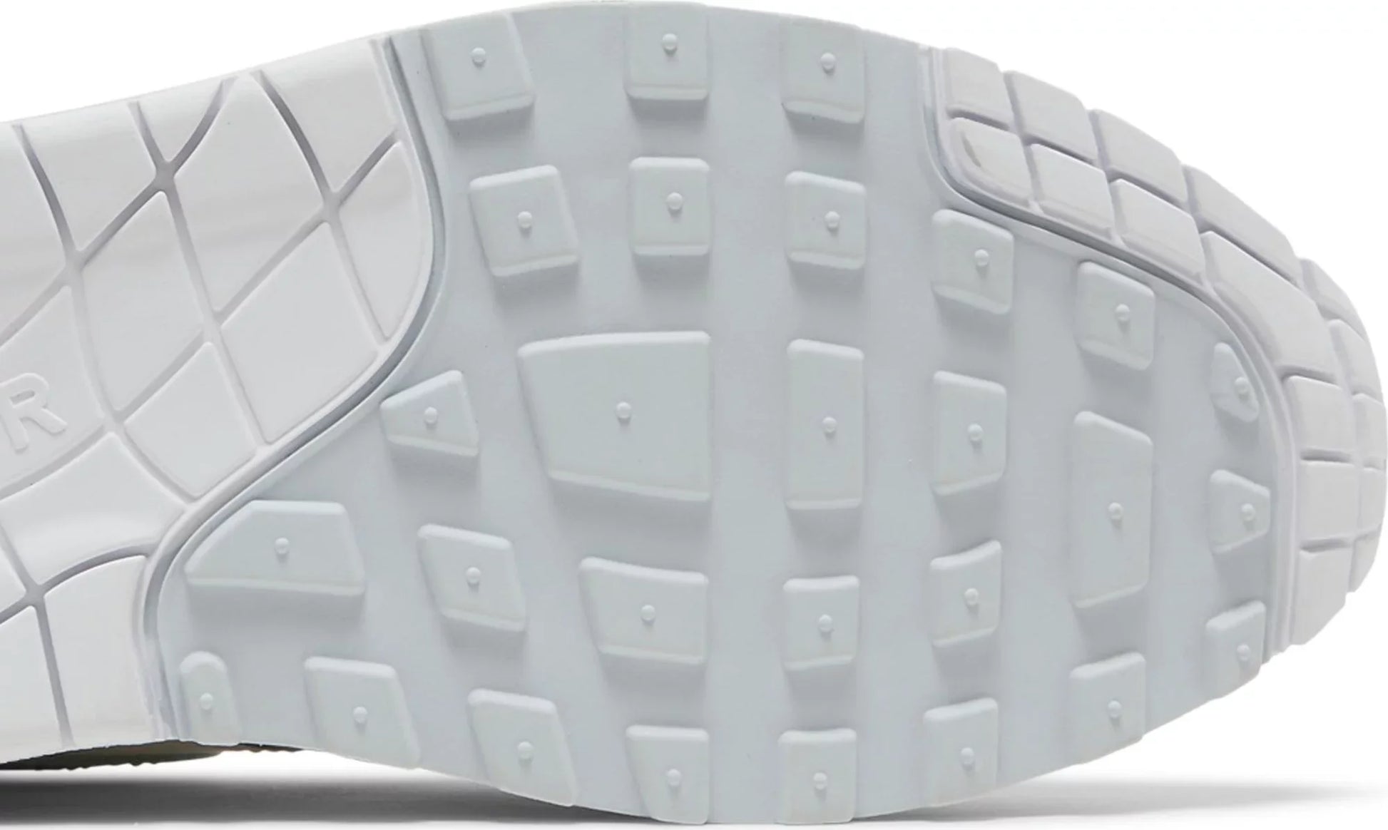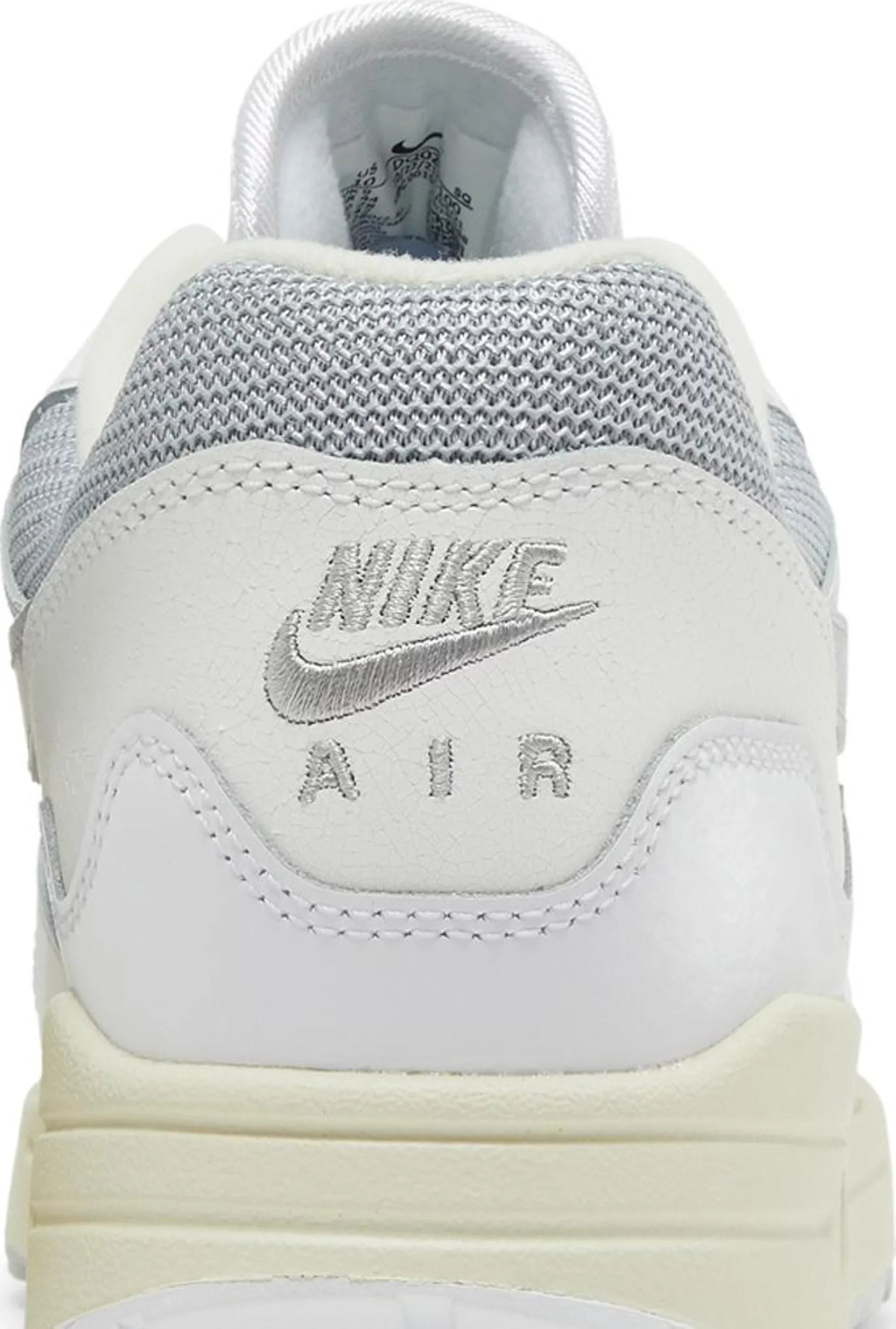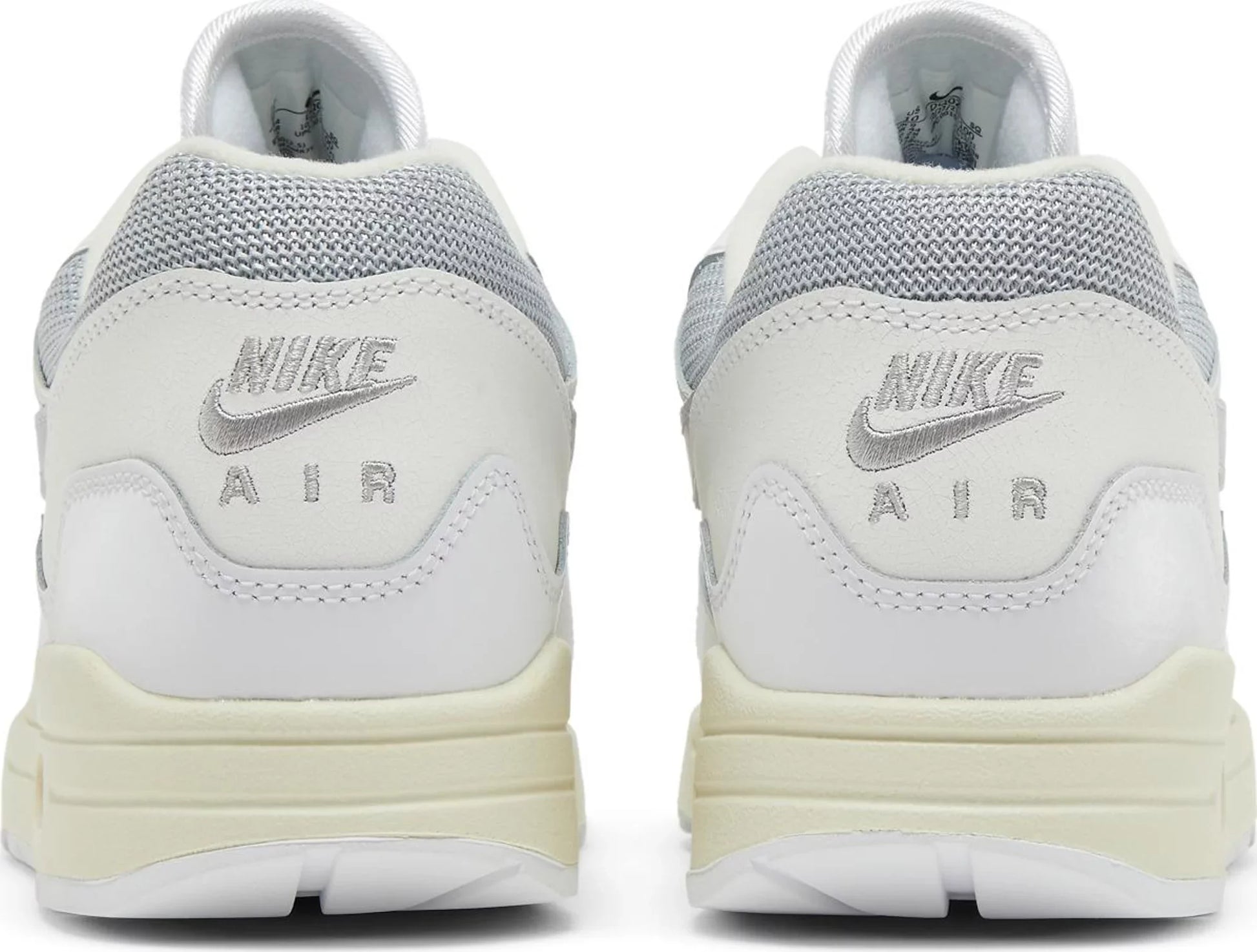 El Patta x Nike Air Max 1 'Blanco' reúne las marcas asociadas frecuentes en una combinación de colores completamente neutral del clásico calzado para correr. La parte superior combina una malla gris claro con revestimientos de cuero blanco y un guardabarros de cuero blanco a juego, con una parte superior ondulada que se ha convertido en la tarjeta de visita de diseño del minorista con sede en Ámsterdam. Los detalles plateados metálicos aterrizan en la etiqueta de la lengüeta tejida Patta, el mini-Swoosh bordado en el antepié lateral y la marca Nike Air en la capa superpuesta del talón. Se aplica un acabado blanco roto vintage a la entresuela de poliuretano, equipada con amortiguación Air-sole visible en el talón.