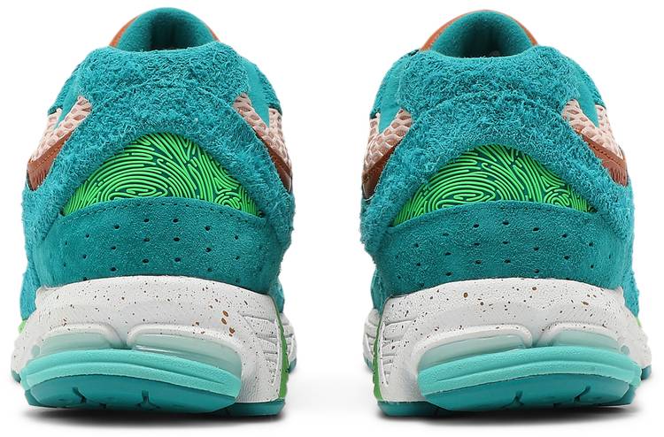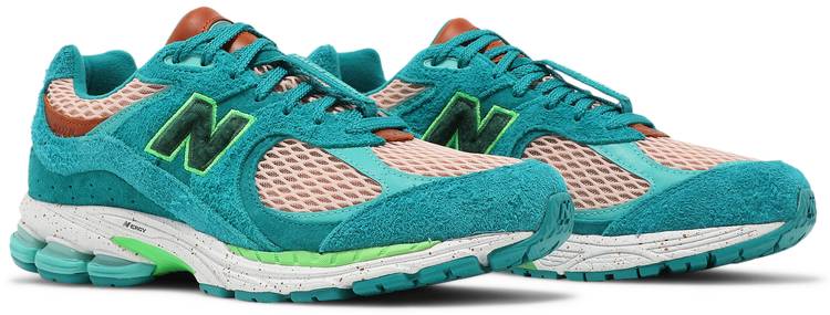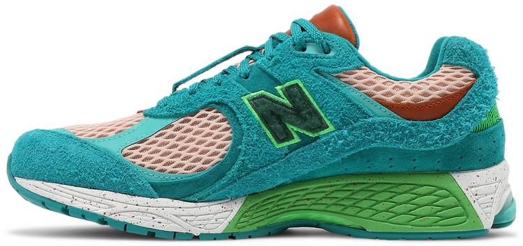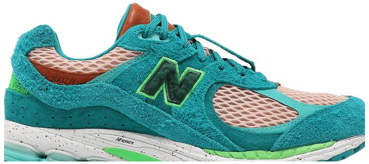 Desarrollado en colaboración con el diseñador de calzado con sede en Los Ángeles, Salehe Bembury x New Balance 2002R 'Water Be The Guide' se inspira en el solvente universal. La parte superior está construida con malla rosa abierta con superposiciones de gamuza desgreñada en un vibrante tono agua. Aparecen toques verdes contrastantes en el talón y el logo 'N' de piel de oveja, mientras que en la lengüeta y el cuello se utiliza cuero marrón rústico. La entresuela de espuma NERGY moteada proporciona una amortiguación suave con un vástago de TPU Stability Web para una mejor estabilidad.